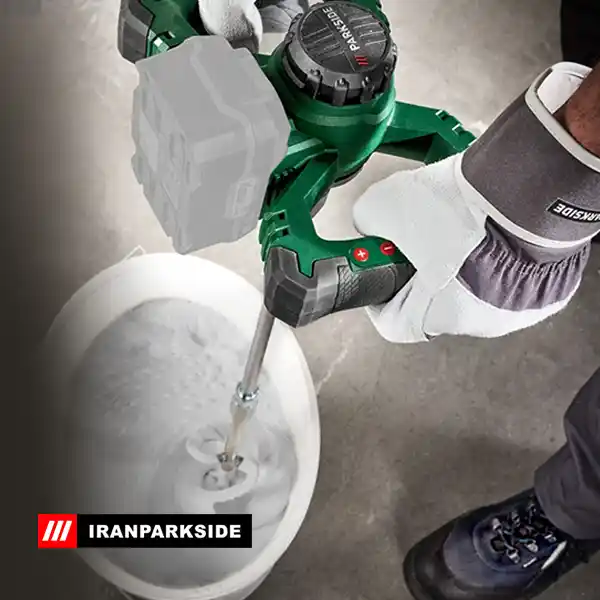 دستگاه Parkside PFMRA 20-Li A1 Cordless Paddle Mixer یک میکسر شارژی (بدون سیم) است که توسط برند آلمانی Parkside طراحی و عرضه شده و معمولاً در فروشگاههای زنجیرهای Lidl آلمان در اروپا عرضه میشود. این دستگاه یک میکسر برقی بدون سیم است که برای مخلوط کردن مواد غلیظ یا نیمه غلیظ طراحی شده. عملکرد دستگاه به این صورت است: با فشردن کلید روشن، موتور شروع به چرخاندن پدل (تیغه مخلوطکن) میکند. کاربر میتواند با فشار روی ماشه یا پیچ تنظیم سرعت، سرعت چرخش را کنترل کند. طراحی بیسیم، آزادی حرکت بیشتری به کاربر میدهد، خصوصاً در فضاهای ساختمانی بدون دسترسی به برق. همزن صنعتی شارژی پارکساید سازگار با تمام باتریهای سری “PARKSIDE X 20V Team” – مناسب برای مواد ساختمانی مایع و پودری – موتور براشلس (بدون زغال) – دوام بسیار بالا و استهلاک کمتر ⚙️ دارای ۶ سرعت چرخش برای تنظیم متناسب با نوع ماده مخلوطشونده.
