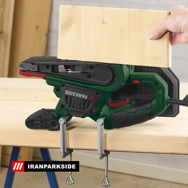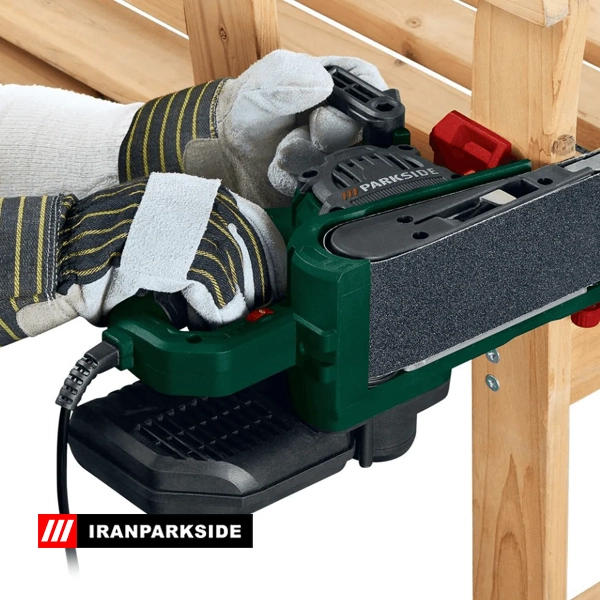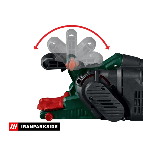 سیستم قفل سریع پارکساید تعویض نوار را بسیار آسان کرده است. کافی است قفل کناری را آزاد کرده، نوار قدیمی را خارج و نوار جدید را روی غلطکها قرار دهید. تنظیم خودکار تسمه از انحراف جلوگیری میکند.