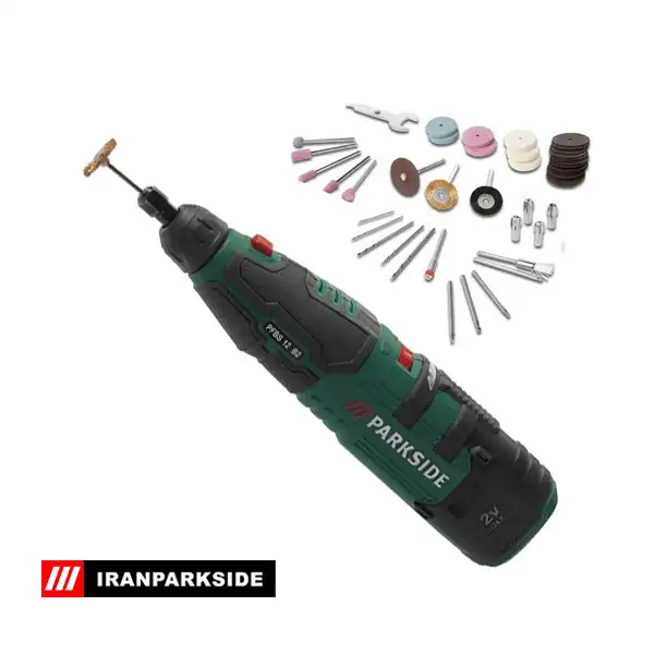 ابزار فرز مینیاتوری شارژی پارکساید مدل PFBS 12 B3، انتخابی بینقص برای کارهای دقیق و حرفهای! با طراحی ارگونومیک و وزن سبک، در دست گرفتن و کنترل آن بسیار راحت است. فرز حکاکی شارژی مناسب برای حکاکی، سنبادهزنی، تراشکاری و پولیش روی چوب، فلز و پلاستیک. مجهز به باتری لیتیوم ۱۲ ولت برای کارکرد بیسیم و آزادی حرکت بیشتر. فرز انگشتی شارژی پارکساید یک ابزاری همهکاره برای هنرمندان، نجاران، تعمیرکاران و علاقهمندان به DIY. کاربرد فرز مینیاتوری برای برشکاری دقیق، تراشکاری، پرداختکاری، سنبادهزنی، سوراخکاری، پولیشکاری و حکاکی روی متریالهایی مانند چوب، فلز، پلاستیک، شیشه و سنگ مناسب است. فرز حکاکی شارژی پارکساید مدل PFBS 12 B3 یک ابزار دقیق و قابلحمل است که برای انجام کارهای ظریف مانند حکاکی روی چوب طراحی شده و با قابلیت تنظیم سرعت، کنترل کامل را به کاربر میدهد.